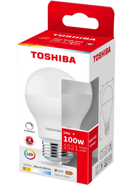 TOSHIBA LED A65 E27 14W 3000K DIMMABLE